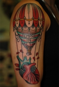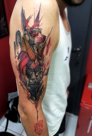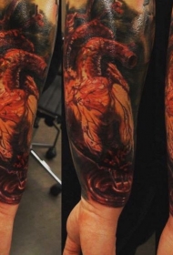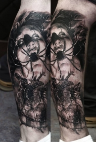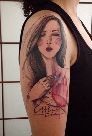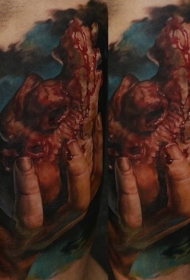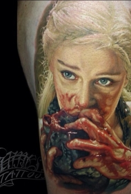 肩部逼真的彩色恐怖风格女人吃心纹身