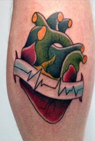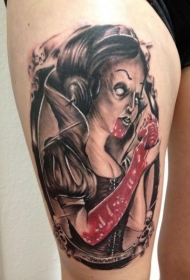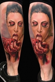 腿部彩色恐怖风格血腥女人与心脏纹身