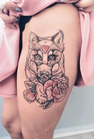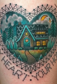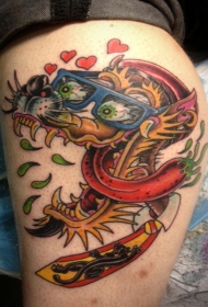腿部彩色纹身猫头鹰与人类心脏纹身