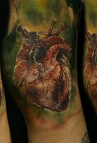 腿部令人毛骨悚然的女人与人类心脏纹身