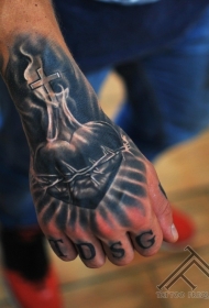 手背宗教主题十字架心形纹身图案