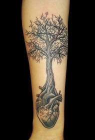 小臂心脏长出的树创意纹身图案