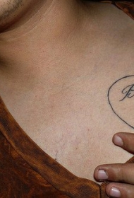 胸部心形和英文名字纹身图案