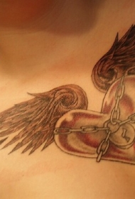 心形铁索翅膀胸部纹身图案
