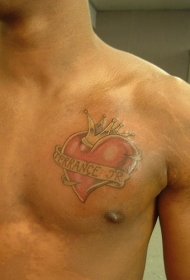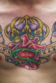 胸部红色心形和皇冠纹身图案