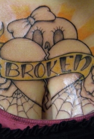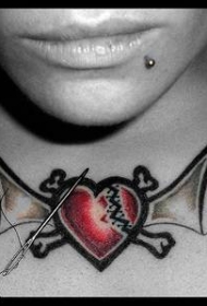 胸部蝙蝠和破碎的心形纹身图案