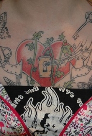 胸部心形锁个性纹身图案