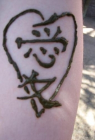 中国汉字和心形纹身图案
