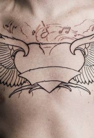 翅膀心形音乐符号胸部未完成纹身图案
