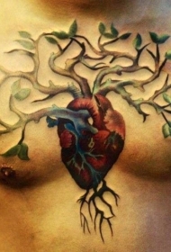 胸部心脏树创意纹身图案