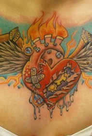 胸部受伤的心脏纹身图案