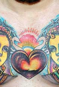 胸部印度女孩肖像和圣心纹身图案
