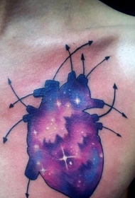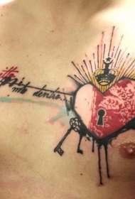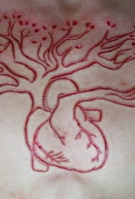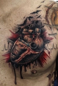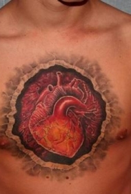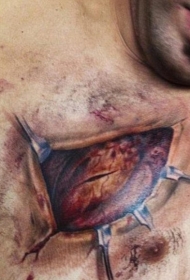 胸部血腥的彩色撕裂皮肤与心脏纹身图案