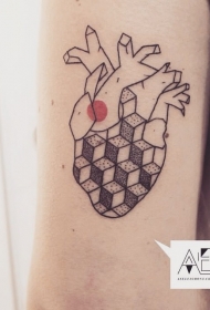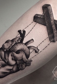 雕刻风格黑色点刺心脏木偶手臂纹身图案