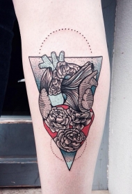 手臂超现实主义风格的彩色心形剑和手纹身图案