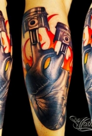 诡异的黑色心脏与彩色火焰手臂纹身图案