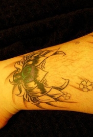 雕刻风格黑色线条鲸鱼与心脏手臂纹身图案