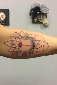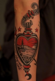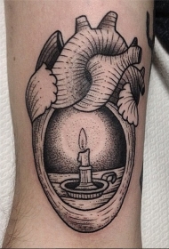 黑色线条点刺心脏与小蜡烛手臂纹身图案