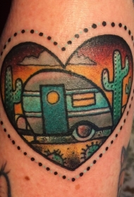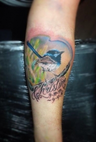 心形与逼真的小鸟字母彩色手臂纹身图案