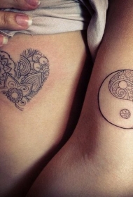 微小的心形和阴阳八卦图腾手臂纹身图案