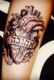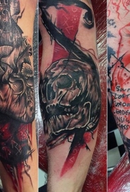 手臂彩色的心脏和字母骷髅个性纹身图案