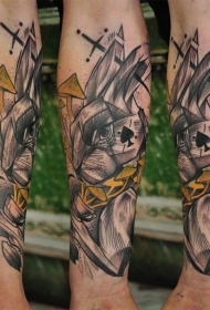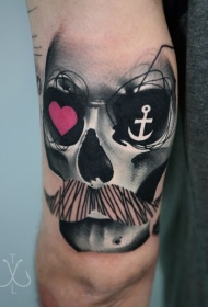 令人难以置信的骷髅胡子和心形彩色手臂纹身图案
