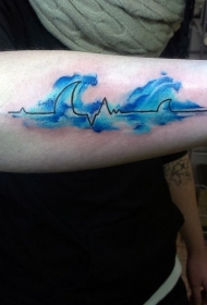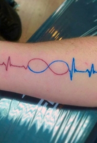 手臂红色和蓝色的无限符号与心电图纹身图案