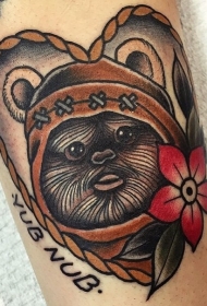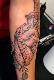 纪念风格黑色字母和红色心脏手臂纹身图案