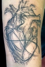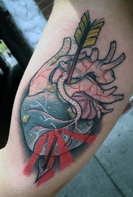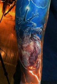 非常逼真的彩色心脏与闪电手臂纹身图案