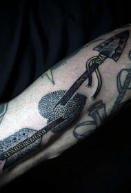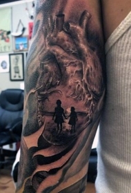 梦幻般的黑白心脏与儿童背影手臂纹身图案