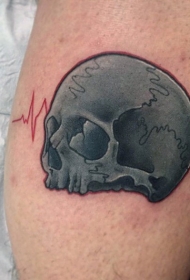 有趣的黑色骷髅与红色心电图手臂纹身图案