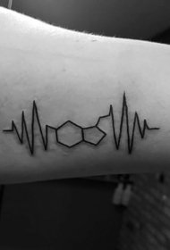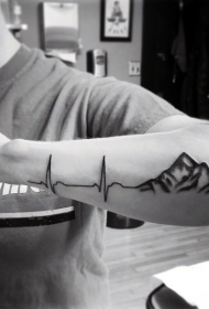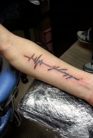 手臂可爱的黑色线条心电图与小狗纹身图案
