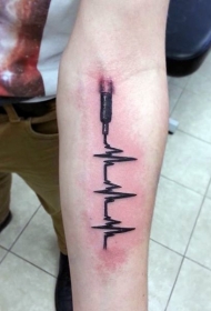 手臂有趣的黑色五线谱音符和心电图心脏纹身图案