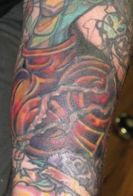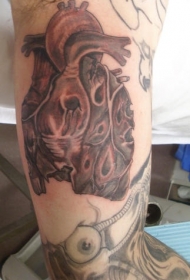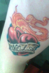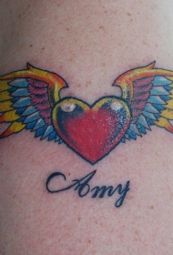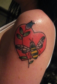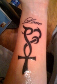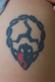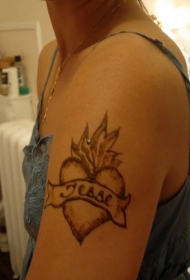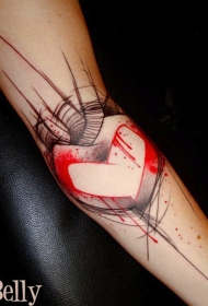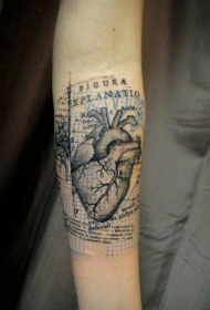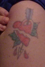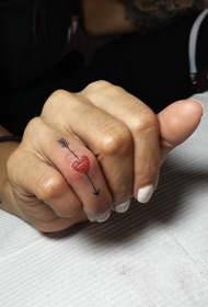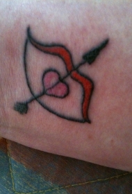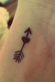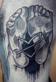 侧肋素描风格黑色线条脚印与心形箭头纹身图案