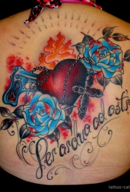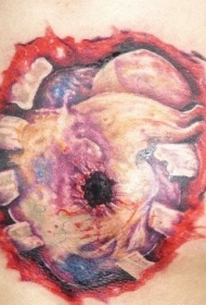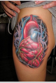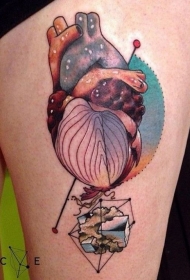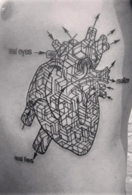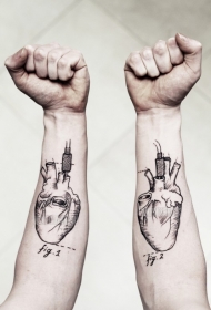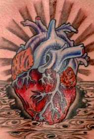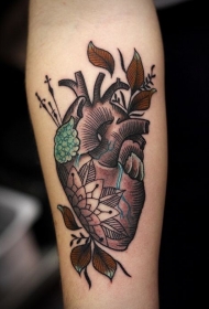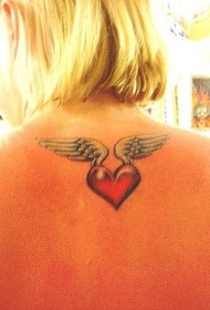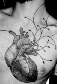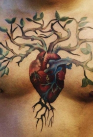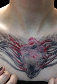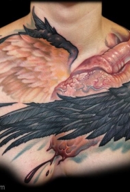 胸部写实风格的鸟的翅膀和心脏彩绘纹身图案