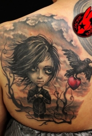 臂部彩绘神秘女子结合乌鸦和心形纹身图案
