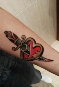 心形纹身图片 女生手臂上彩色的心形纹身图片
