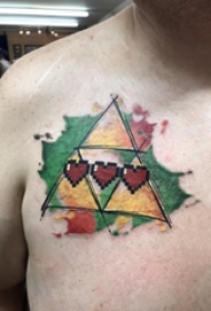 纹身胸部男 男生胸部心形和三角形纹身图片
