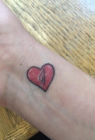 女生纹身手腕 女生手腕上彩色的心形纹身图片