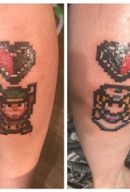 情侣小清新纹身 情侣小腿上心形和卡通人物纹身图片