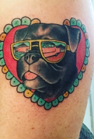 手臂纹身素材 男生手臂上心形和小狗纹身图片