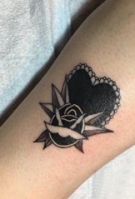 欧美小腿纹身 女生小腿上心形和玫瑰纹身图片