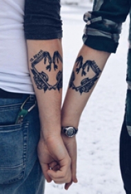 心形纹身情侣 情侣手腕上黑色的心形纹身图片