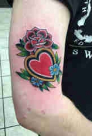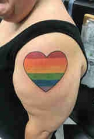 心形纹身图片 男生大臂上彩色的心形纹身图片