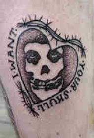 心形纹身图片 男生小腿上心形和骷髅纹身图片