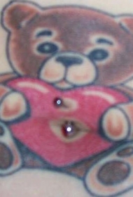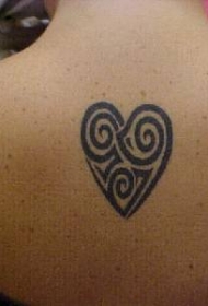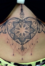腹部漂亮的黑色点刺心形花卉纹身图案