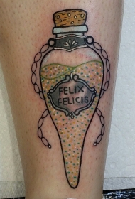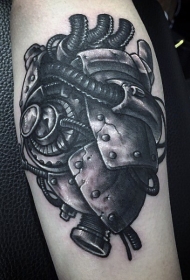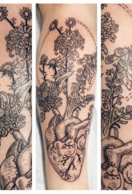 小腿美丽的黑色雕刻风格心脏与花朵纹身图案