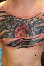 难以置信的彩色血腥吸血鬼与心脏纹身图案