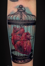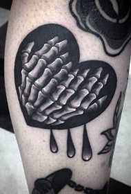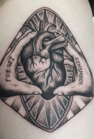 点刺风格黑色手拿人类心脏和字母纹身图案