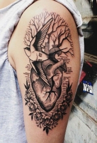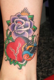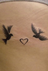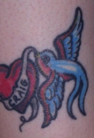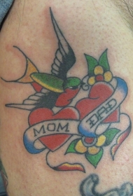 传统的心形燕子和妈妈爸爸英文纹身图案